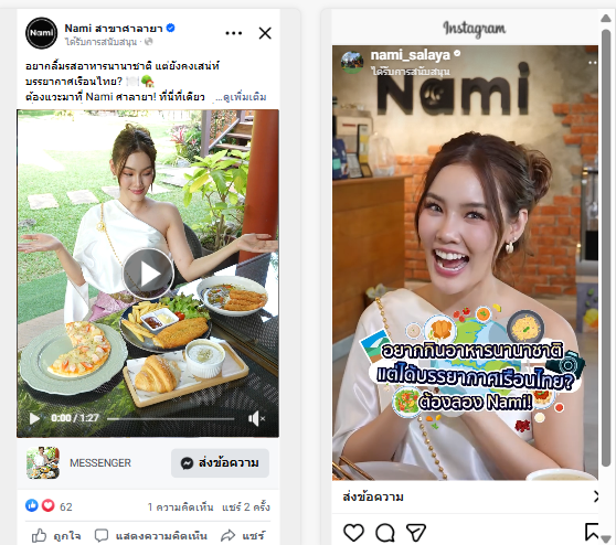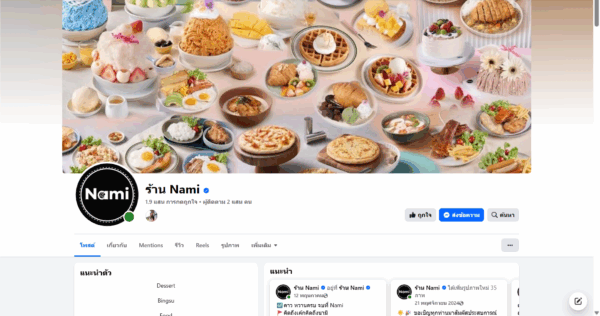 Nami Café is a dessert café renowned for custom birthday cakes and a wide range of international dishes. The café emphasizes quality in both cakes and beverages, allowing customers to enjoy a relaxing dine-in experience or take-away. With nine branches in total, Nami Café primarily uses its Facebook Page “ร้าน Nami” as the main marketing channel.