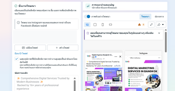 Digital Agency Bangkok can help you set up professional Target Audiences so your ads reach the right customers both existing and new. We handle the entire Facebook Ads strategy, from audience selection and ad content creation to performance analysis, ensuring every campaign is effective and delivers measurable results.
