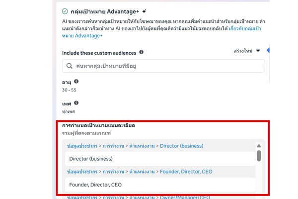 Example: Age 20–35, female, interested in fashion/sports, located in Bangkok