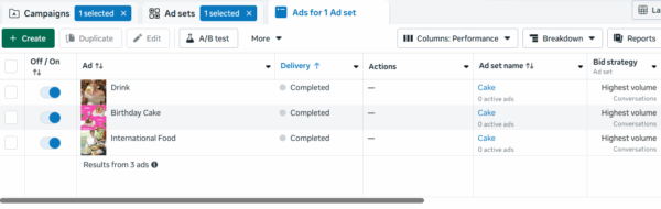 ตัวอย่างหนึ่งคือการร่วมมือกับธุรกิจร้านอาหารและคาเฟ่ในไทย Nami Cake ที่ทีมงานสามารถออกแบบแคมเปญ Facebook Ads ชุดเดียว แต่สามารถเข้าถึงกลุ่มเป้าหมายหลายกลุ่ม ทั้งลูกค้าเดิมและกลุ่มลูกค้าใหม่ โดย Creative และข้อความโฆษณาถูกปรับให้เหมาะสมกับสินค้าแต่ละประเภท ส่งผลให้ engagement และการสอบถามข้อมูลเกิดขึ้นอย่างมีประสิทธิภาพ แม้ใช้งบประมาณจำกัด