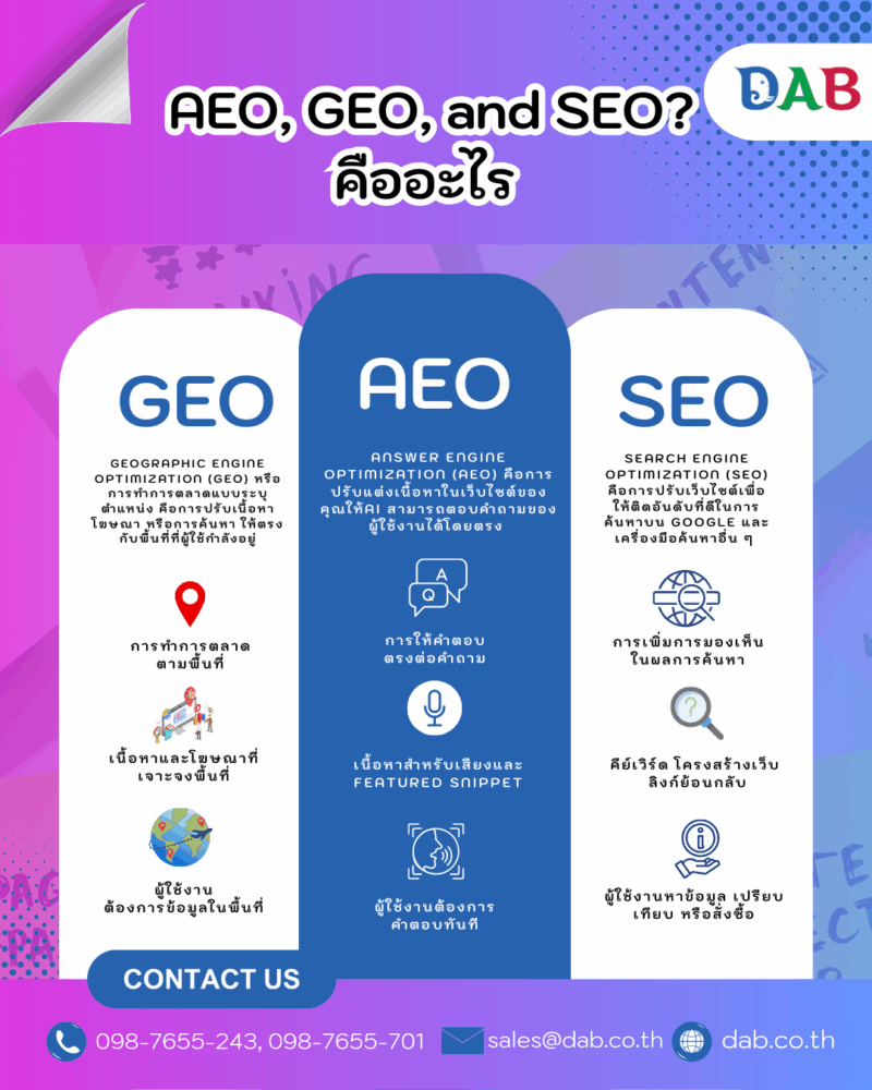 AEO SEO GEO คืออะไรอินโฟกราฟฟิก