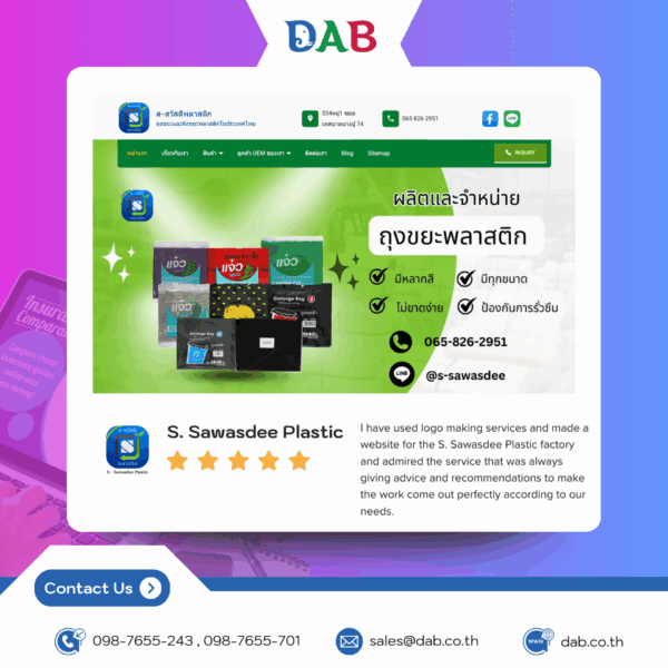 Digital Agency Bangkok has successfully helped client websites reach Google’s first page for highly competitive keywords. For example, S-Sawasdee Plastics achieved top rankings for industry-specific search terms, driving consistent website traffic and new customer inquiries.